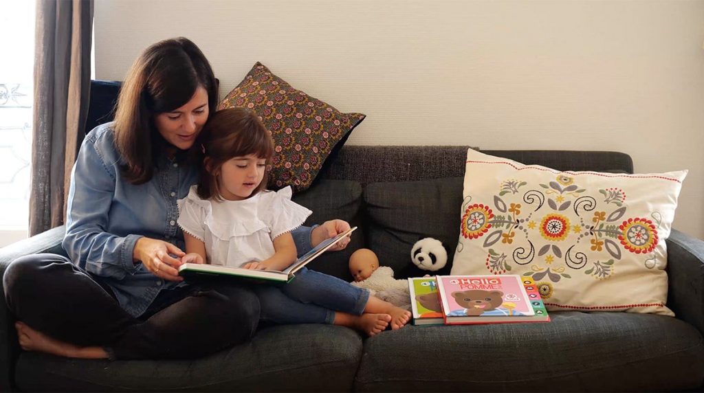 Vous pouvez l’accompagner ! Lorsqu’il écoute l’histoire, pointez du doigt les images sur le livre. Vous pouvez aussi lui présenter l’histoire en français : “c’est l’histoire d’une Petite Puce qui voulait découvrir le monde…”