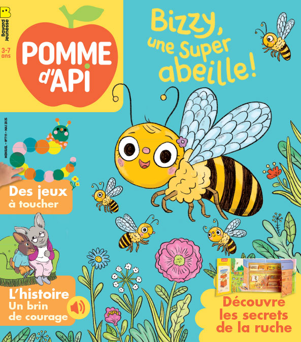 Dans ce numéro, Pomme d’Api embarque les enfants, guidés par Bizzy l’abeille, dans l’univers de la ruche avec un jeu-surprise et une super histoire. Ils vont aussi mettre la main à la pâte pour préparer un délicieux Arbre des saveurs, comprendre comment fonctionne un vélo, jouer au skatepark avec les ToutouMiaou et écouter la grande histoire de Petit-Jean qui a besoin d’un brin de courage pour la Grande Course à la Carotte. À découvrir aussi : la nouvelle histoire de Petit Ours Brun à écouter en neuf langues !