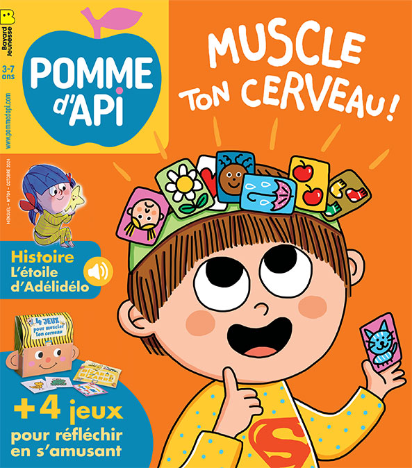 Pour Pomme d’Api, jouer, c’est le métier des enfants ! Alors, ce mois-ci, les petits vont s’amuser à booster leur cerveau avec quatre jeux rigolos et des cartes surprise à trier, ranger, classer… On met aussi la main à la pâte en fabriquant un jeu de dominos à croquer et, pour ne plus avoir peur de la nuit, on écoute bien au chaud la grande histoire de l’étoile d’Adélidélo.